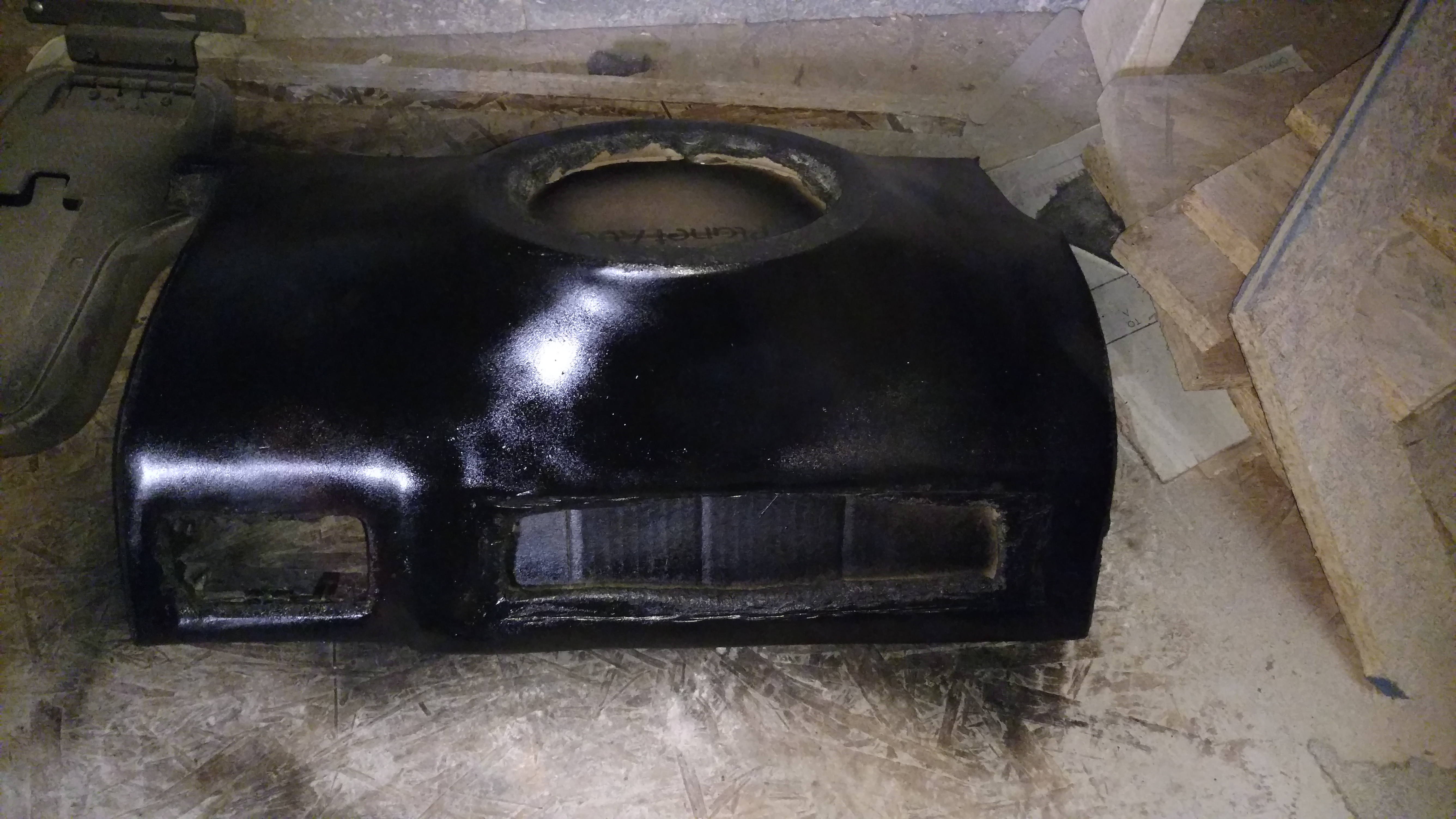 Due to the odd shape of what we had to work with, the box and the port needed to be made separately.
